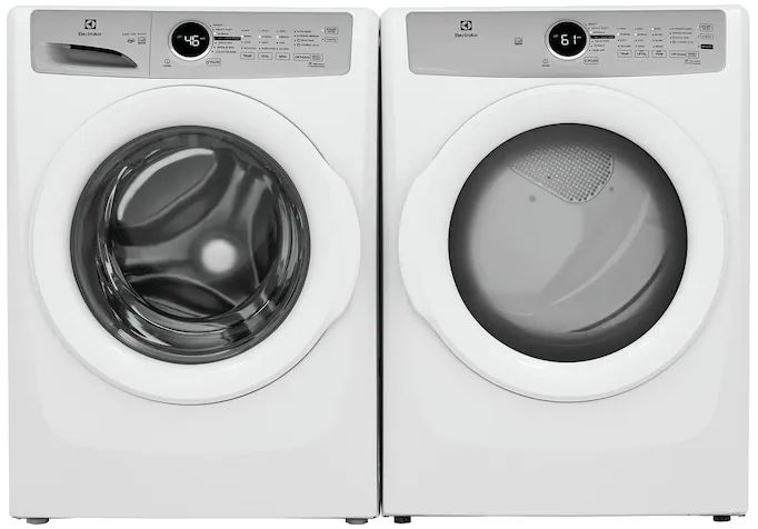 Electrolux White Front Load Laundry Pair with a 5.1 cu. ft. capacity front load washer and a 8.0 cu. ft. capacity front load electric dryer.Read More
