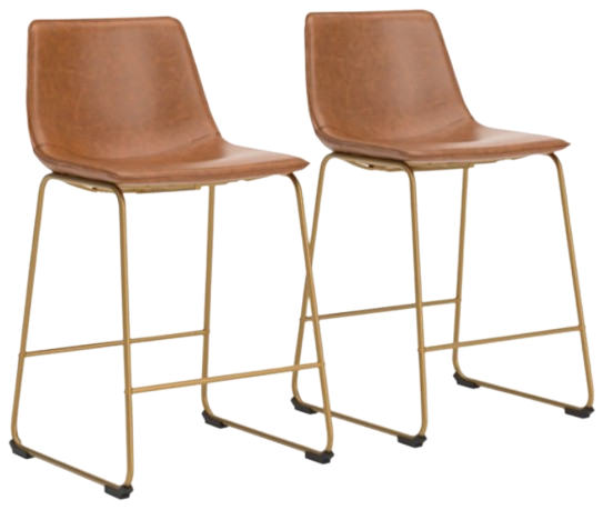Dine in casual contemporary fashion with this counter height bar stool. A retro-inspired bucket design gives it a mid-century vibe. Sleek faux leather and a luxe goldtone frame bring the look right into the present. And with a contoured seat for your comfort, it dishes out style and convenience all in one.Read More